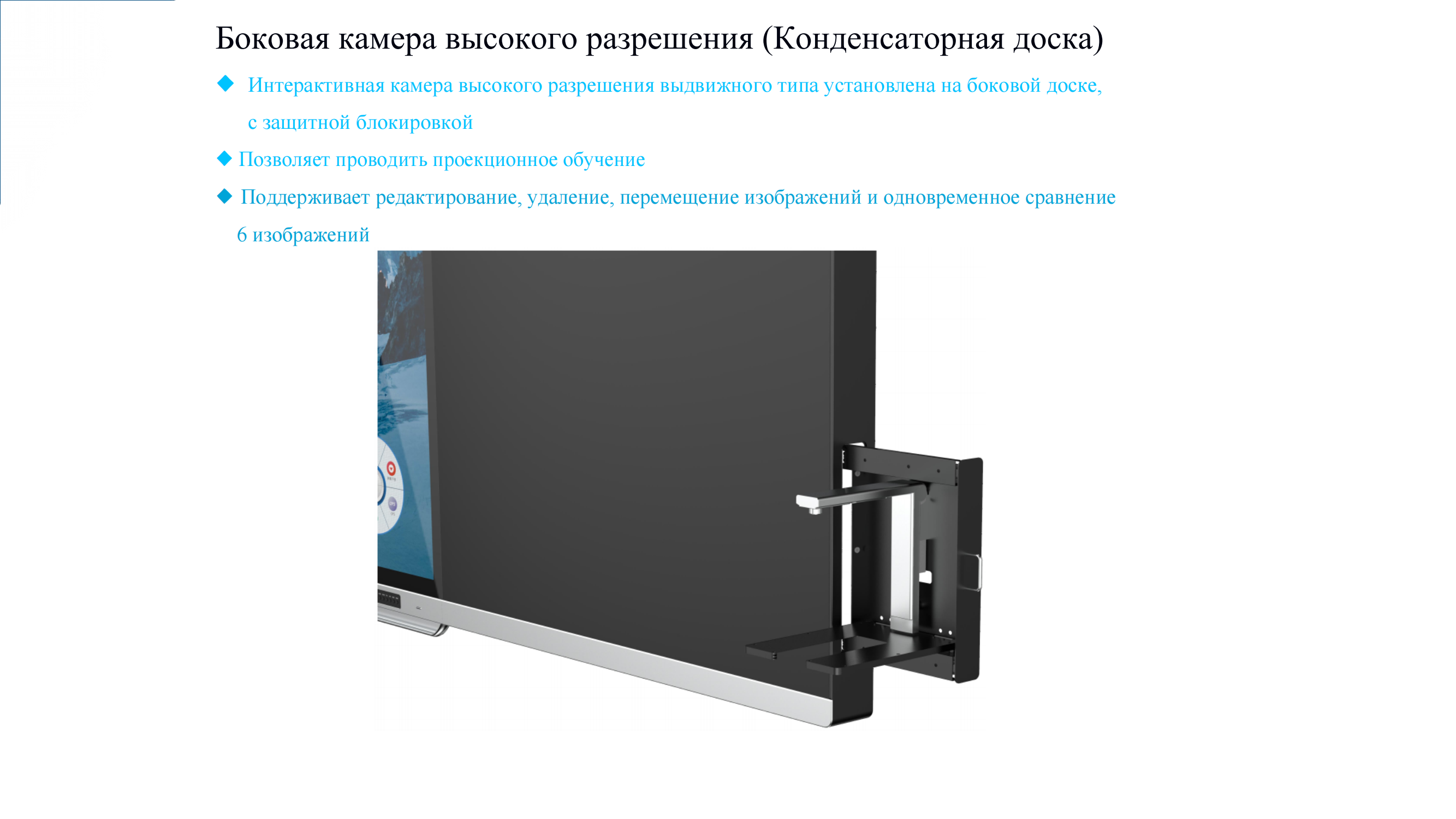 Интеллектуальная интерактивная доска полностью превзошла традиционное сочетание доски и короткофокусного проектора. 86-дюймовая ЖК-панель имеет антибликовое закаленное стекло с бесшовным процессом нулевой ламинации, изолированное от пыли и водяного пара; передовая емкостная сенсорная технология, оснащенная эксклюзивным обучающим программным обеспечением для обучения письму, позволяет в полноформатном режиме писать обычным мелом или пользоваться сенсорным экраном, создавая новый опыт преподавания для учителей и студентов. Интерактивная система, позволяющая работать беспылевым мелом на всей поверхности - позволяет не экономить место, устанавливая и интерактивное оборудование и школьную доску на одну стену. Данная модель станет достойным украшением любой аудитории и современным рабочим инструментом. На боковой панели расположены все необходимые для работы порты и разъёмы. Данная модель является передовой разработкой в сфере интерактивных панелей. За счёт своего размера и покрытия, нано интерактивная доска позволяет полностью отказаться от меловой доски. Данное решение идеально впишется в интерьер как большой аудитории, так и школьного кабинета. Удобное переключение между функцией интерактив